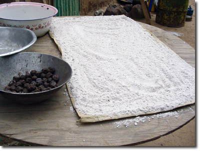 ![]() Fonziba observes woman playing a clalbash at wedding |